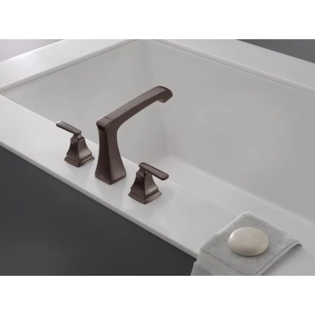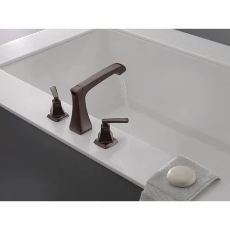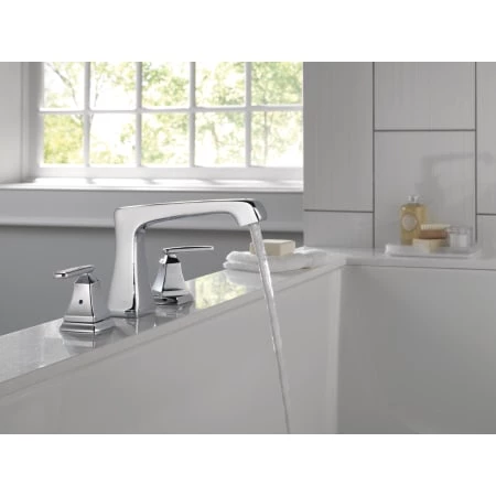- Widespread deck mounted installation – 3 hole faucet with 8 – 16″ faucet centers