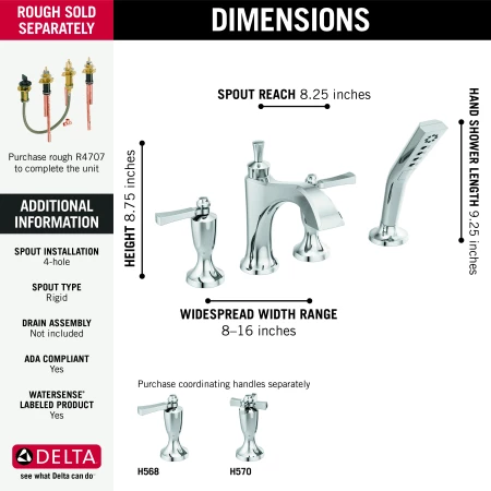 - Widespread installation – 3 hole faucet with 8-16″ centers