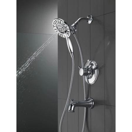 - Tub and Shower Package Includes: Valve trim, In2ition™ shower head / hand shower, shower arm, and tub spout with diverter