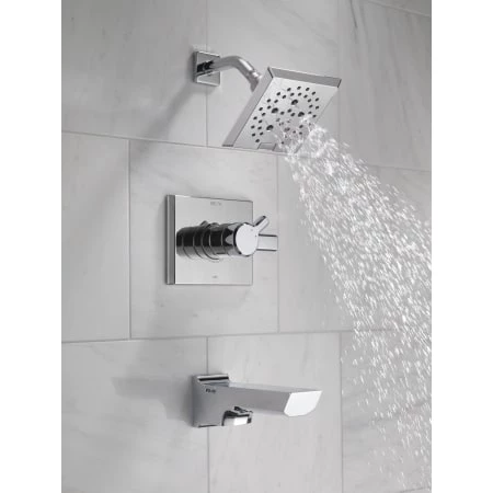 - Pressure balanced valve trim – dual cartridges control the water temperature and volume independently