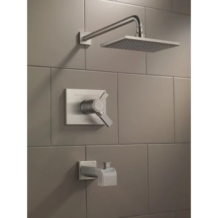 - Independent Volume Control: Dual-control valve trims are what separate Delta showers from the competition. The top, smaller handle controls temperature, while the bottom, larger dial controls the water volume (flow rate). The distinct advantage to this is that you can set the temperature control to a temperature you like, and then leave it, turning the shower on and off each time with the volume control. You’ll never have to fuss with the temperature again.